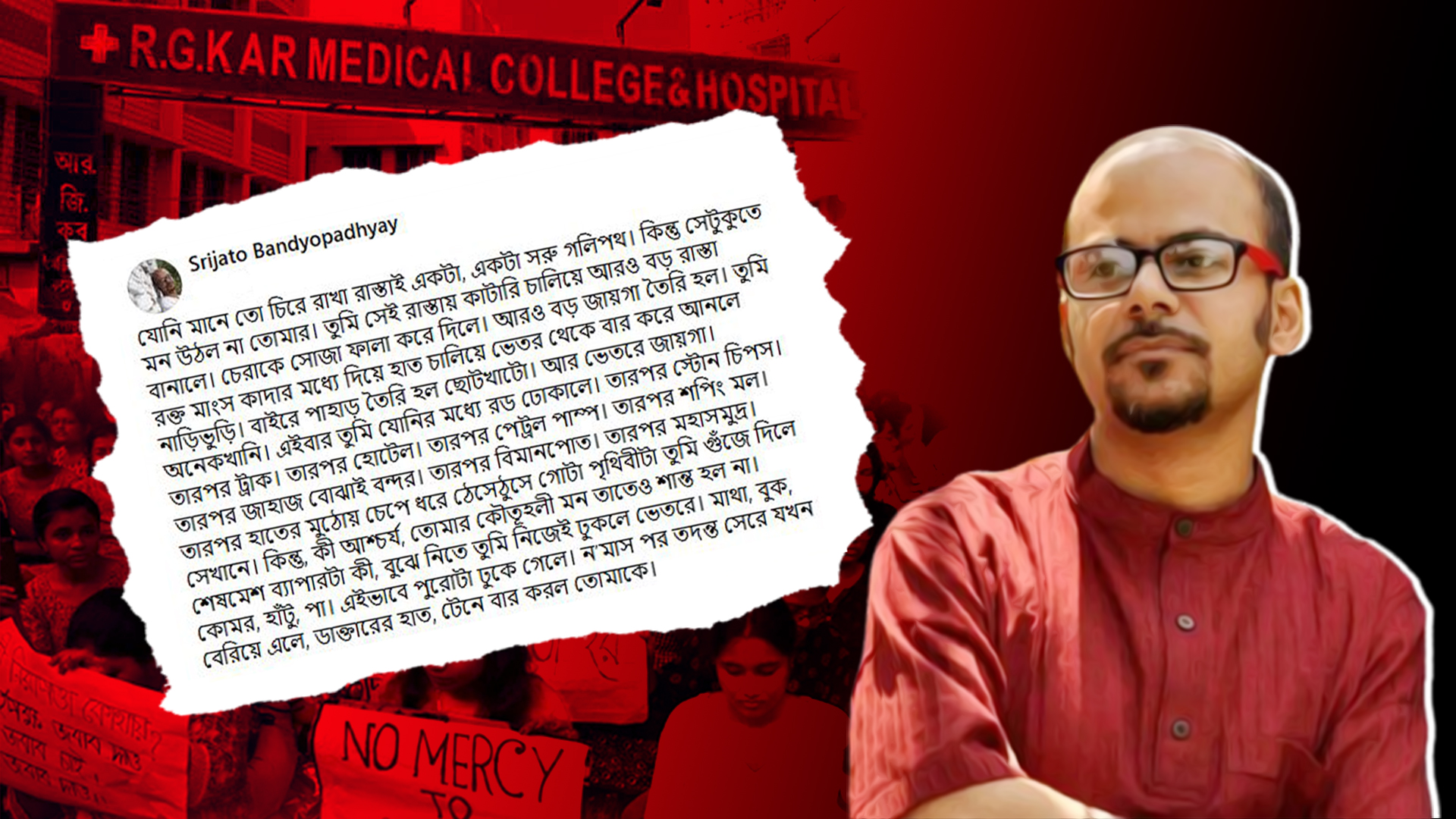 কলকাতা : কলকাতার বুকে আরজি কর হাসপাতালে ঘটে যাওয়া নারকীয় ঘটনার প্রতিবাদে উত্তাল রাজ্য রাজনীতি। লাগাতার বিক্ষোভে চিকিৎসক সমাজ। পাশে এসে দাঁড়িয়েছেন রাজনৈতিক দলের নেতানেত্রী। এগিয়ে এসেছে সুশীল সমাজও। প্রতিবাদে সরব সাংস্কৃতিক জগতের পরিচিত ব্যক্তিরা। চিকিৎসক তরুণীর নৃশংস হত্যার বিচার চেয়ে সোচ্চার অপর্ণা সেন, স্বস্তিকা মুখোপাধ্যায় ,কৌশিক গাঙ্গুলি থেকে সৌরভ গঙ্গোপাধ্যায়। এবার এই ঘটনা নিয়ে প্রতিবাদে সামিল হলেন কবি শ্রীজাত বন্দ্যোপাধ্যায়।
