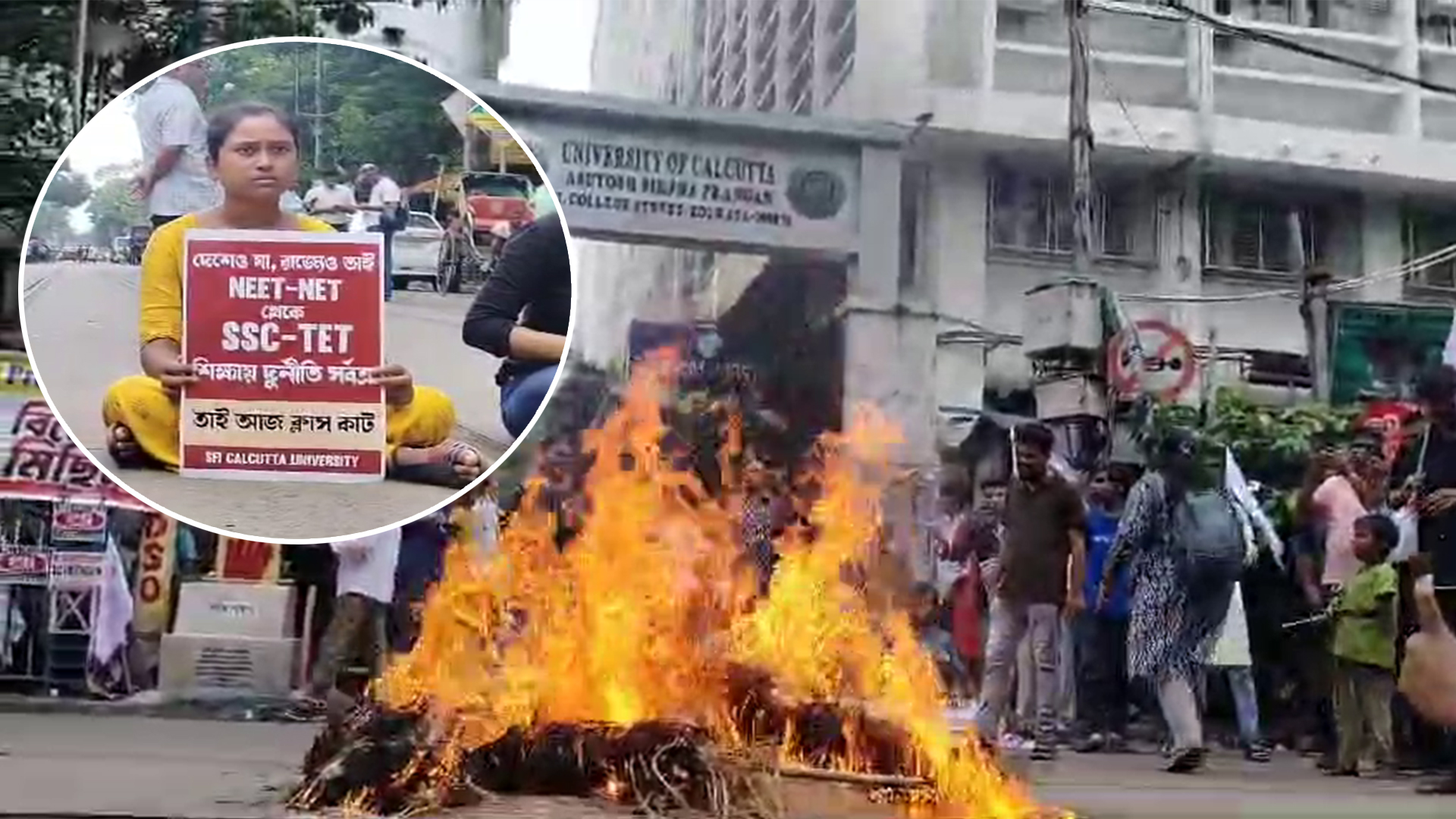 নিট (NEET) ও নেট (NET) দুর্নীতির প্রতিবাদে বাম ছাত্র সংগঠন এসএফআইয়ের ডাকে দেশ জুড়ে ধর্মঘট। বাংলার বিভিন্ন বিশ্ববিদ্যালয়ে ধর্মঘট কর্মসূচি পালন করল এসএফআই (SFI)। কলকাতা বিশ্ববিদ্যালয় ও প্রেসিডেন্সি বিশ্ববিদ্যালয়ের সামনে ধর্মঘট উপলক্ষে বাম ছাত্র সংগঠনের সর্বভারতীয় নেত্রী দীপ্সিতা ধর ও এসএফআইয়ের রাজ্য সম্পাদক দেবাঞ্জন দের নেতৃত্বে চলল প্রতিবাদ কর্মসূচি।