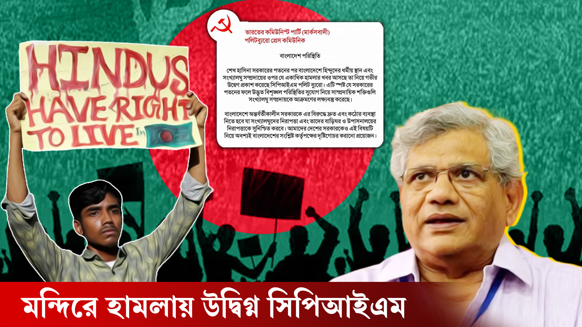 শাসন ক্ষমতা থেকে শেখ হাসিনার সামূহিক অপসারণের পর বাংলাদেশ জুড়ে সংখ্যালঘুদের হাল ক্রমাগত খারাপ হওয়ার খবর ছড়িয়েছে বিভিন্ন মাধ্যমে| নিরাপদে নেই হিন্দুদের মন্দিরগুলিও| সেদেশে সুযোগ বুঝে মাথাচাড়া দিয়েছে সংখ্যাগুরুদের মৌলবাদী শক্তি| চলছে লুঠপাট, হাঙ্গামা, ভাঙচুর| দেওয়া হচ্ছে ধর্মীয় উস্কানি| অবশ্য সামাজিক মাধ্যমের দৌলতে বাংলাদেশের কোথাও-কোথাও সাম্প্রদায়িক সম্প্রীতির দৃষ্টান্ত দেখা গিয়েছে| কিন্তু তা খণ্ডচিত্র, আদৌ সামগ্রিক ছবি নয়| এবার মৌলবাদীদের হামলা নিয়ে মুখ খুলল সিপিআইএম| দলের পলিটব্যুরোর প্রেস বিবৃতিতে সরাসরি ধরা পড়ল হিন্দু উপাসনালয়ের বিপন্নতার কথা, যা সিপিআইএম দলের পক্ষে বিরল ও ব্যতিক্রমী ঘটনা – মনে করছেন রাজনৈতিক বিশ্লেষকরা|