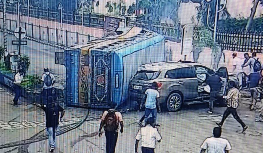 সল্টলেকের কলেজ মোড়ে উল্টে গেল কেবি১৬ রুটের বাস:
