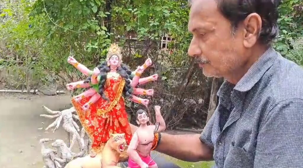 মতো এবারও মাত্র ১০ থেকে ১২ ইঞ্চির মিনি দুর্গা বানিয়ে তাক লাগিয়ে দিয়েছেন জলপাইগুড়ির দেবাশীস…