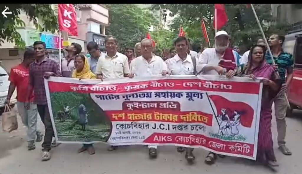 কোচবিহারে পাটের নূন্যতম সহায়ক মূল্যের দাবিতে JCI দপ্তর অভিযান অল ইন্ডিয়া কৃষক সভার