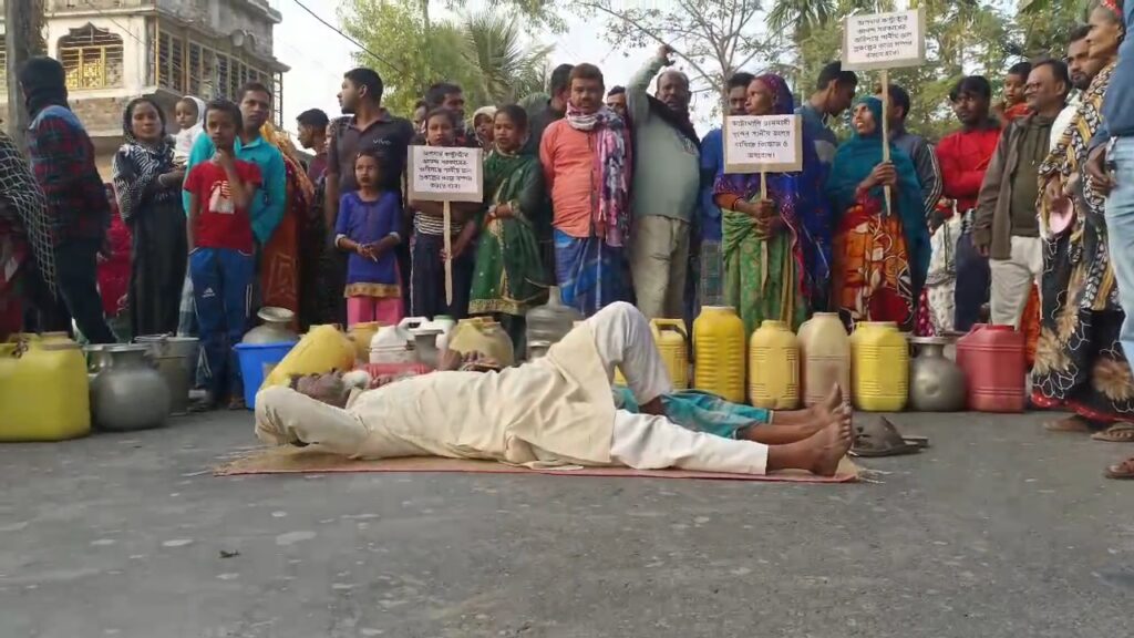 পানীয় জলের দাবিতে বালতি ও কলসি হাতে রাস্তায় নেমে বিক্ষোভ দেখালেন গ্রামবাসীরা।